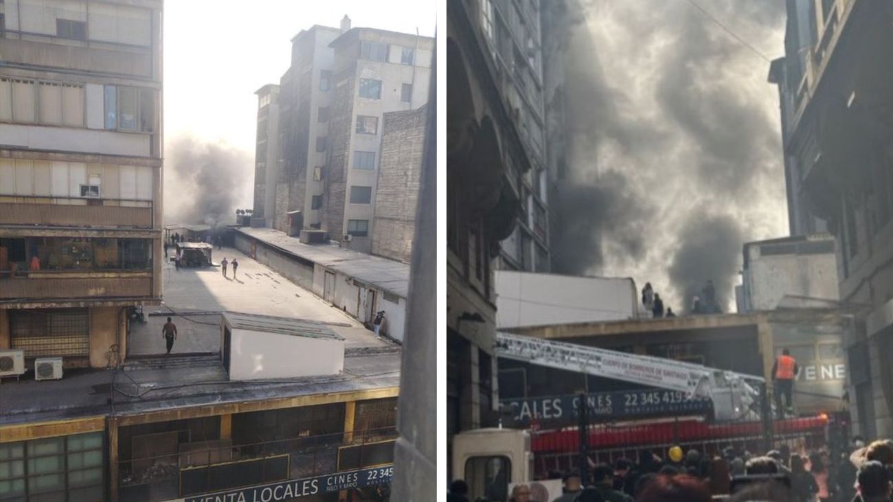 “Se informa que el fuego comienza en el -1 de este edificio, que finalmente es la galería 21 de Mayo, donde tienen bodegas, principalmente accesorios de electrónico y de celulares, y un edificio residencial de 13 pisos”, detalló Giorgio Tromben, comandante del Cuerpo de Bomberos de Santiago.
